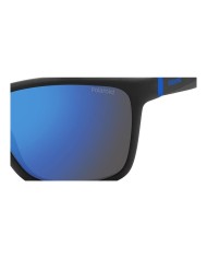 Occhiale da sole Polaroid Kids celluloide nera satinata gommata con inserti blu , lente specchiata blu polarizzata